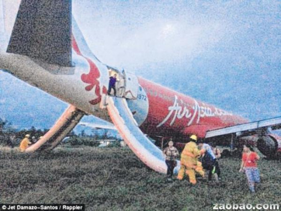 亚航飞机冲出机场跑道,乘客必须使用紧急逃生梯下机。(互联网)