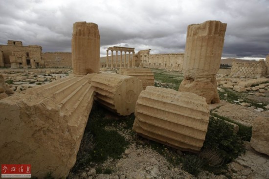 遭战火破坏的叙利亚巴尔米拉古城(摄于2014年3月14日)。