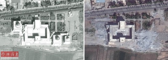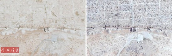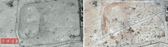 2014年12月23日,联合国训练研究所业务卫星应用项目发布卫星图片,显示了叙利亚冲突爆发以来,大片文化遗址遭破坏的景象。这张拼版照片显示了叙利亚巴尔米拉古城一处文化遗址的变化(左图:2009年10月10日 右图:2014年10月26日)。联合国表示,自叙利亚冲突爆发以来,位于叙利亚的近300个文化遗址被破坏。详细报告称,在卫星定位的290个地点中,有24个被完全破坏,104个遭严重破坏,85个中度受损,77个可能被破坏。