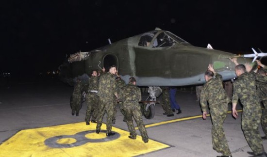 资料图片:在伊拉克巴格达,俄罗斯士兵将一架苏-25战机送至伊军穆萨纳军事基地。 当日,伊拉克从俄罗斯订购的首批战机运抵巴格达,这些战机将用于打击极端武装。 新华社路透