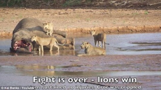 【延伸阅读】饥饿非洲狮为争食“群殴”尼罗河大鳄