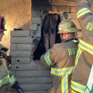 报道称,赫尔南德斯早上4点30分起床准备工作,却听到自家烟囱传来求救声,这才发现女友全裸卡在里头,用绳索救援却失败,只好通知消防队前来帮忙打破烟囱。24名消防队员一打破烟囱就看到一双沾满煤灰的腿,接著再花2小时将救出,所幸女子只受到轻伤,送医治疗后已无大碍。