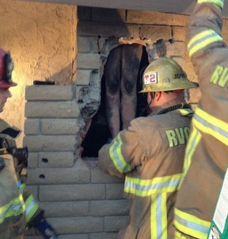 女子全裸卡在男友家的烟囱里。(图/翻摄自CAL FIRE Riverside推特)
