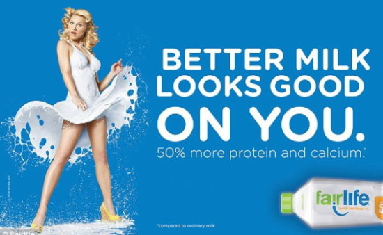 台湾东森新闻网12月3日援引英国《每日邮报》的报道称,可口可乐推出的“Fairlife”品牌专卖标榜低糖和高蛋白质的高价牛奶,最新广告中,身材窈窕的女模摆出诱人姿势,身上被泼洒牛奶,乳白液体变成各种样式的洋装、礼服,广告还写下“喝下她们所穿的”、“摇点更好的”、“好牛奶在你身上更好”等字句。