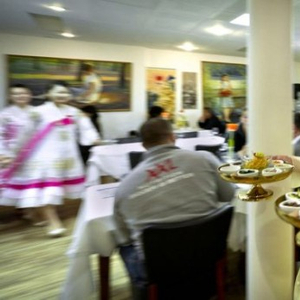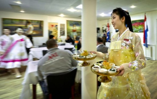 资料图片:2012年3月10日,荷兰阿姆斯特丹,穿着朝鲜传统服饰的店员穿梭往来提供服务。近日,欧洲首家朝鲜餐厅在荷兰首都开业。腾讯网
