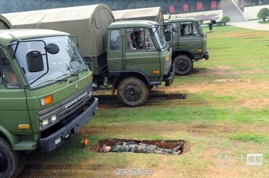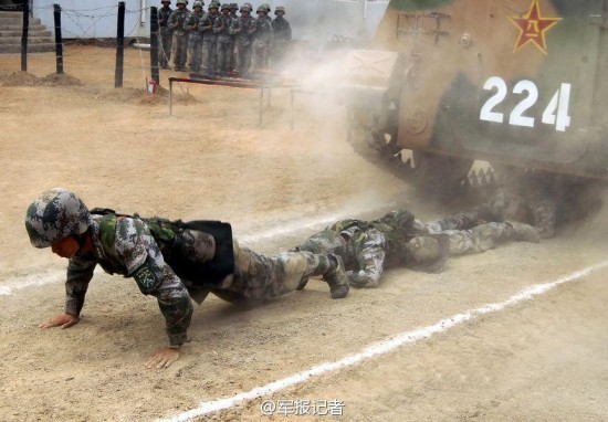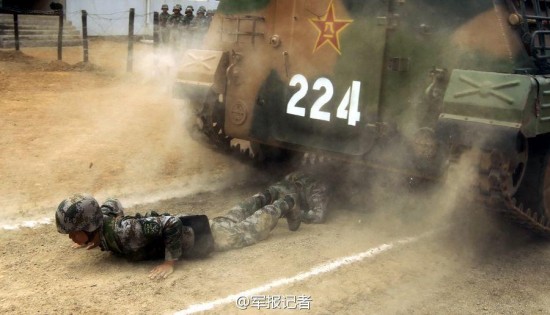 【延伸阅读】解放军士兵从行驶中装甲车底钻过