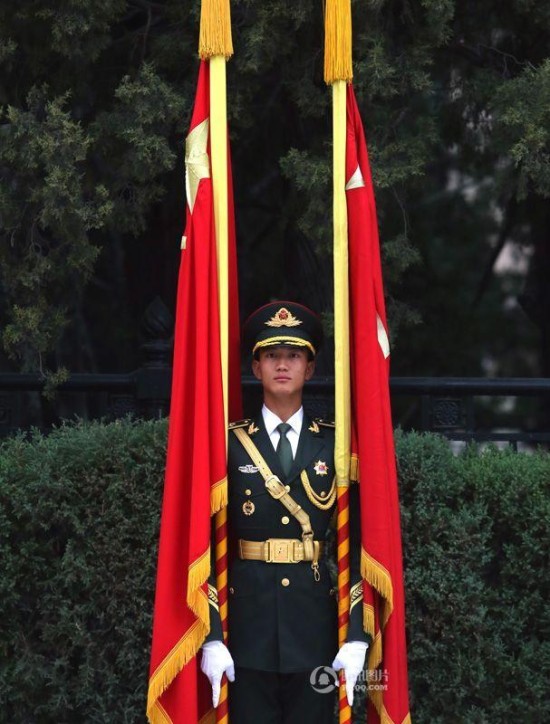 2014年10月28日,在北京人民大会堂东门外广场欢迎仪式上,仪仗队士兵训练。