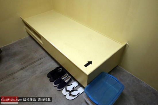 根据美方的说法,该拘留营内所关的都是被俘获的敌方战斗人员,而负责营区运作的单位是关塔那摩联合特遣部队。统计显示,关塔那摩监狱平均每名在押人员每年耗资大约90万美元,可称“全球最昂贵监狱”。图为当地时间2014年11月4日,古巴关塔那摩湾,关塔那摩监狱内一个典型的囚犯室,一张没有床铺的床,上面标明了祈祷的方向。