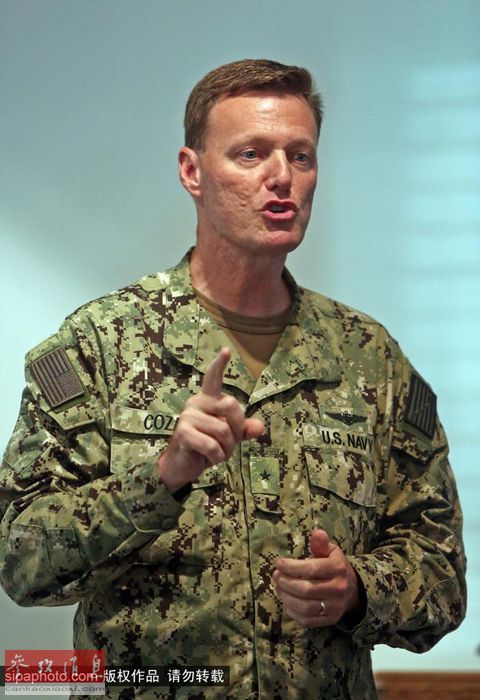 关塔那摩监狱当前关押着148名囚徒,一些人被关押了近13年,从未受到指控或审判,囚徒中“许多人”被视为美国的敌人。图为当地时间2014年11月4日,古巴关塔那摩湾,关塔那摩监狱内,海军少将、关塔那摩监狱联合特遣部队的司令Kyle Cozad在监狱教堂颁奖礼上讲话。