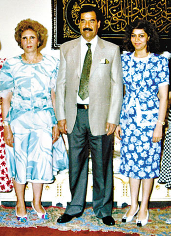 资料图片:萨达姆与妻子萨吉达和长女拉加德(右)的一张合影。(图片源于网络)