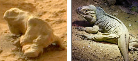 在火星上发现的一块形状奇特的岩石,一些UFO猎人认为是鬣蜥化石。科学家认为类似这样的发现不过由一种心理现象所致,被称之为“空想性错视”,即人类的大脑将模糊、随机的图像赋予实际意义。