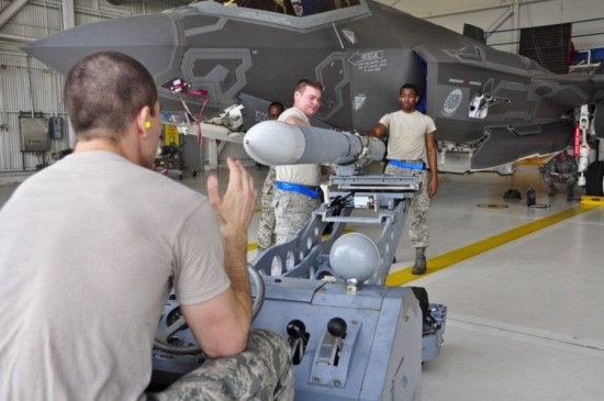 【延伸阅读】实拍美军士兵为F-35战机挂装导弹