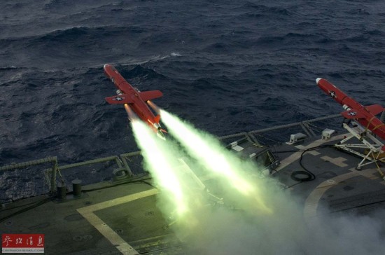 2012年9月21日,在加勒比海海域,BQM-74E型无人机从美国海军安德伍德号导弹护卫舰上起飞。新华社/路透
