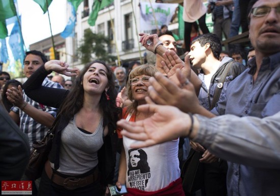 10月8日,在阿根廷布宜诺斯艾利斯,阿总统克里斯蒂娜的支持者在其手术成功后庆祝。新华社/路透