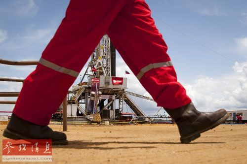 一名石油工人经过委内瑞拉国家石油公司莫里查尔工厂的油井钻机。