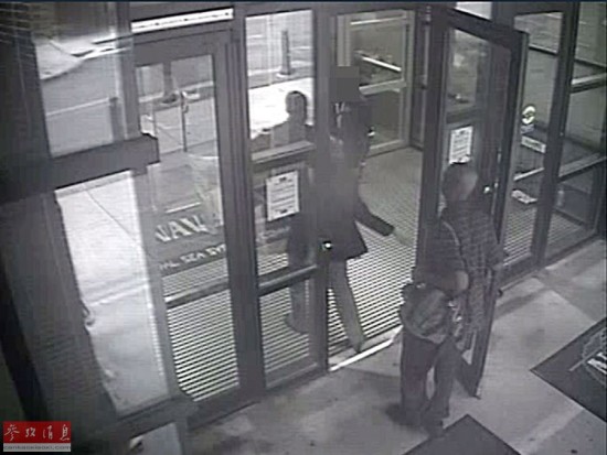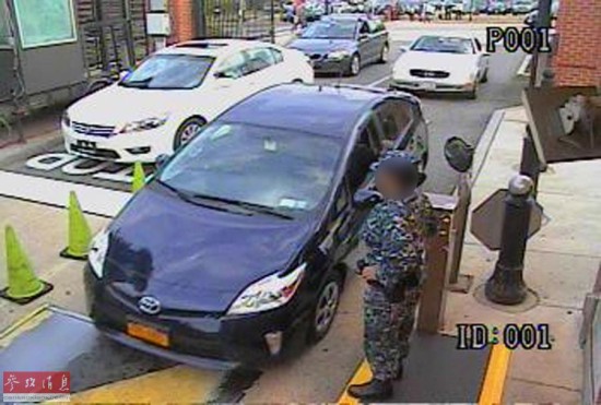 这张美国联邦调查局9月25日公布的监控录像截图显示,亚历克西斯驾驶租用的轿车进入海军海洋系统司令部总部所在地停车场。新华社/法新
