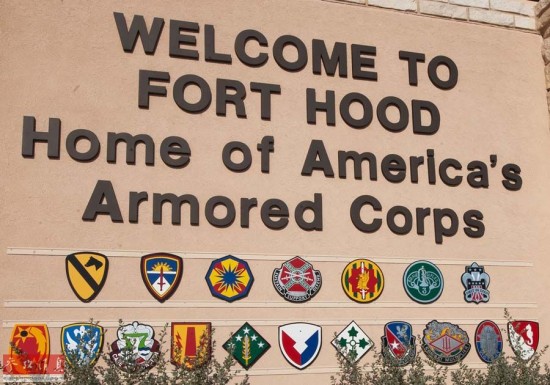 胡德堡军事基地是美国陆军现役装甲部队在美国本土的最大基地。2009年11月5日,该基地曾发生一起严重枪击事件,造成13人死亡,30多人受伤。这是2009年11月7日拍摄的胡德堡军事基地入口的资料照片。