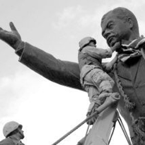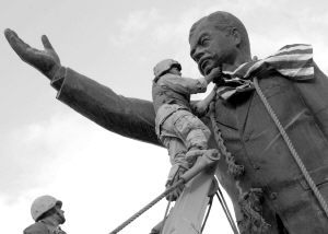 资料图片:美军拉倒巴格达市中心的萨达姆雕像(图片源于网络)