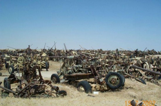 一大批废弃的高炮。