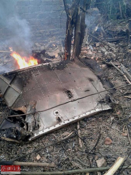 这是7月7日在越南河内西部的石七县附近拍摄的军用直升机坠毁现场。新华社/越通社
