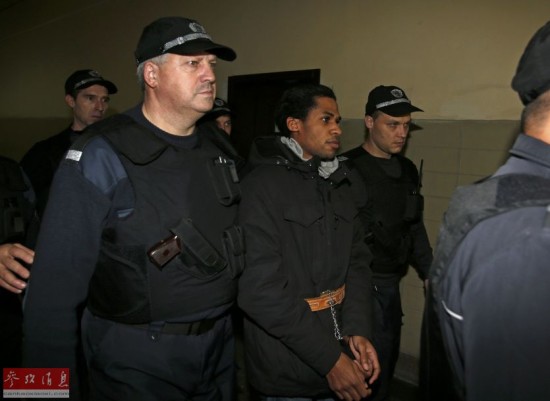 1月20日,法国哈斯科沃,法国公民Fritz-Joly Joachin在警方的护送下抵达南部城市哈斯科沃法庭。