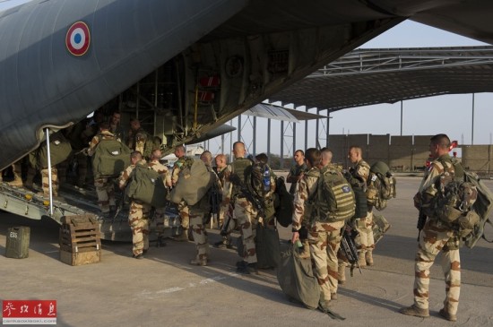 由法国国防部1月12日提供的照片显示,1月11日,法国士兵在位于乍得的基地登上开赴马里的运输机。新华社/法国国防部