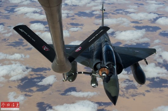 由法国国防部1月12日提供的照片显示,1月11日,法军幻影2000D战斗机从位于乍得的基地飞往马里期间进行空中加油。新华社/法国国防部