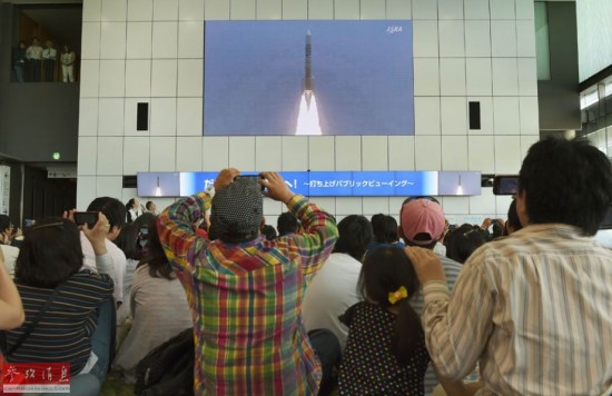 5月24日,民众在东京日本科学未来馆内收看火箭发射直播。新华社/法新
