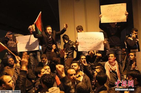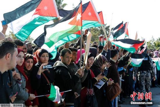 当地时间2月3日,约旦首都安曼,愤怒的抗议群众。约旦军方3日宣布,被极端组织“伊斯兰国”劫为人质的约旦飞行员卡萨斯贝已遭杀害。约旦空军中尉飞行员卡萨斯贝去年年底在一次支持美国领导的反伊斯兰国军事行动中所驾驶F16战机坠机被俘。