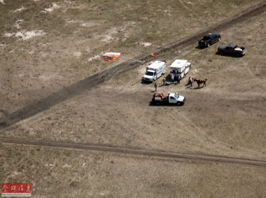 8月19日,在美国蒙大拿州布罗德斯一处偏远地区,救援人员赶到飞行员降落伞降落位置。美国空军当日称,一架B-1B轰炸机从南达科他州的埃尔斯沃思空军基地起飞后在蒙大拿州一处偏远地区坠毁,4名飞行员及时弹射逃生。新华社/美联