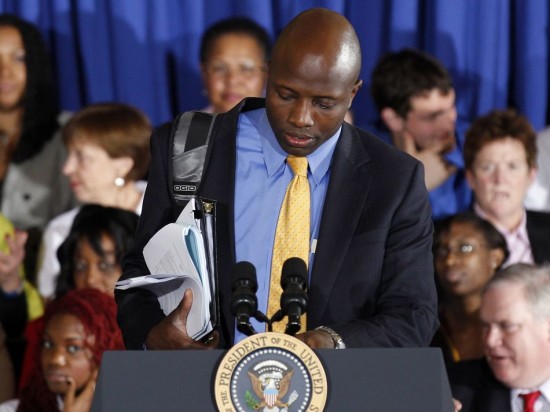 2011年11月8日,勒夫在奥巴马演讲之前进行讲话。