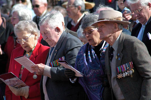 2005年8月15日,在澳大利亚首都堪培拉,一些二战老兵在纪念太平洋战场胜利60周年仪式 上悼念死去的战友。(摄影 米立公)