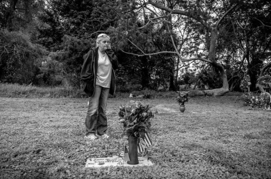 苏西·尚普在女儿苏菲·尚普军士的墓前哀悼。苏菲·尚普在陆军服役时多次被强奸,其后自杀。