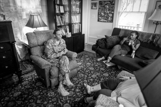 华盛顿,柏克兰和莫罗参加了讨论军中性创伤的“真理与正义峰会”后在酒店房间。她们因没有早些站出来而愧疚难当。