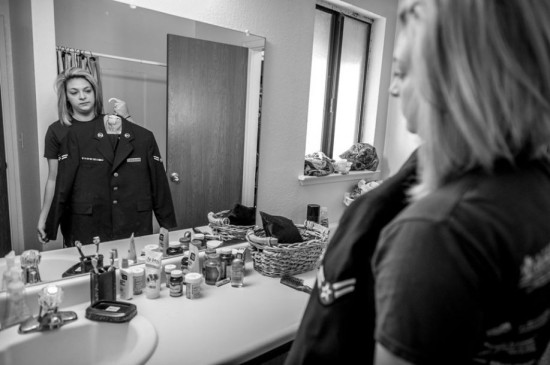 据《纽约时报》中文网12月25日报道,摄影记者卡尔弗特用镜头讲述了军中性侵害幸存者骇人听闻的故事。12月3日,美国国防部长查克·哈格尔(Chuck Hagel)宣布,性侵报告比2013年增多了8%。报告估计案件数为19000起,较2012年的26000起有所下降。哈格尔说,这说明军队在处理性侵案件方面取得了进展。图为:凯特·韦伯说,她在被派驻德国一周后被强奸,那时她19岁。“他得以脱身,因为层层指挥体系允许如此。”