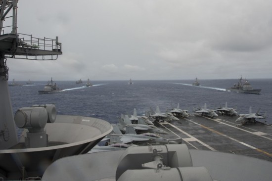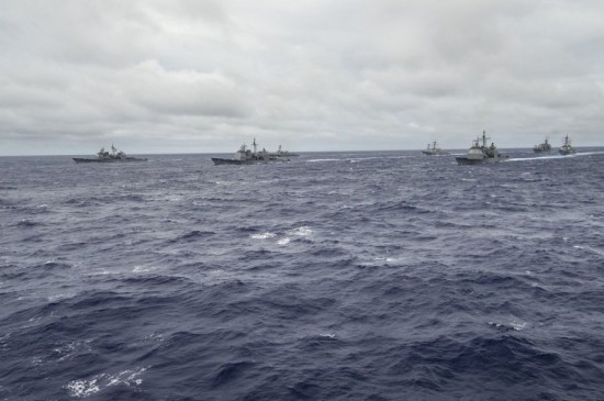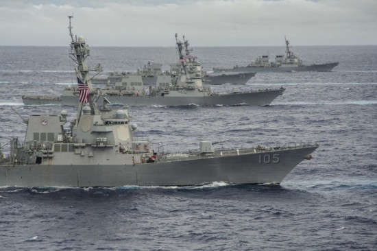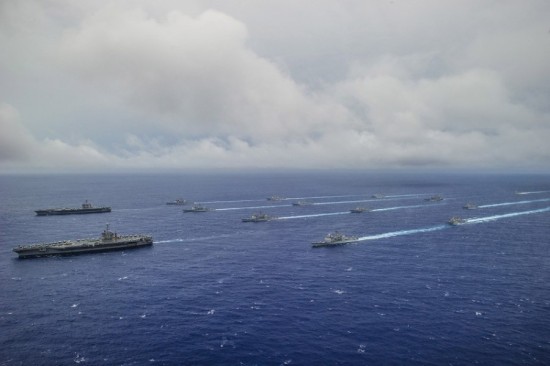 从9月15日起,美国海军在西太平洋海域举行代号为“勇敢之盾-2014”(Valiant Shield 2014)的军事演习,旨在增强美国空军、海军、海军陆战队的联合作战能力。此次军演15日拉开帷幕,动用了19艘舰船、200多架军用机,动员约1.8万名士兵,为美军单独实施的最大规模演习。