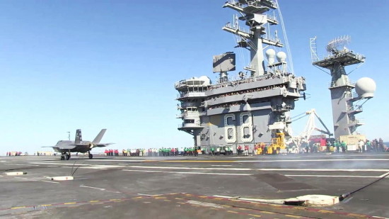 美国当地时间2014年11月3日,F-35C型战斗机在美国海军尼米兹号航空母舰上,开始了其第一轮上舰试验。