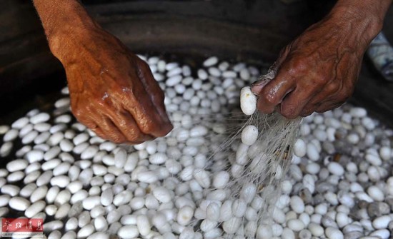 2014年5月22日拍摄的照片显示,阿富汗民众在整理编织毛毯用的蚕丝。阿富汗毛毯是该国最重要的出口物资之一。阿富汗曾有600万人直接或间接从事毛毯编织工作,主力军为北部的妇女与儿童,而如今编织工人数量骤减。在一家非营利性机构的合作下,阿富汗赫拉特农业部向多个地区供应了5050箱蚕蛹,试图借此振兴本国的蚕丝生产与加工行业。目前参加42500名阿富汗妇女与她们的家人参加了这项合作计划,一来可借此维持生计,二来帮助本国生产商进军国际市场。据了解,一块蚕丝或羊毛地毯的售价可达150美金至数千美金不等。