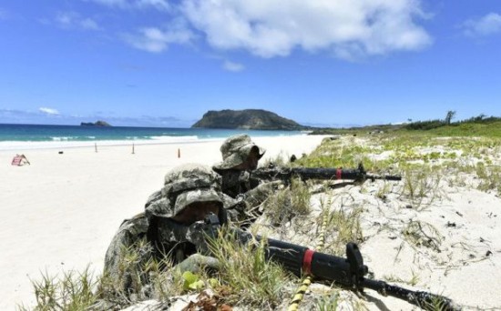 据外媒报道,日本自卫队此次训练通过直升机在海岸附近投放自卫队队员,然后实施登陆作战。随后来自美国、澳大利亚和印度尼西亚海军陆战队的士兵也相继登岛。