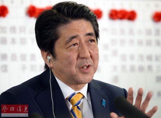 12月14日,在日本东京自民党总部,日本自民党总裁安倍晋三接受记者采访。