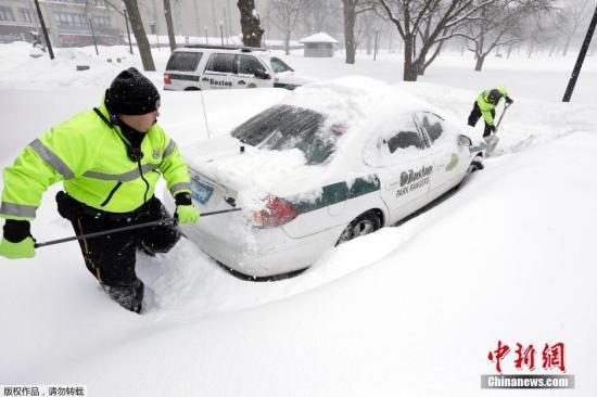 当地时间2015年2月9日,美国波士顿,当地遭遇暴风雪天气,市民出行受阻。