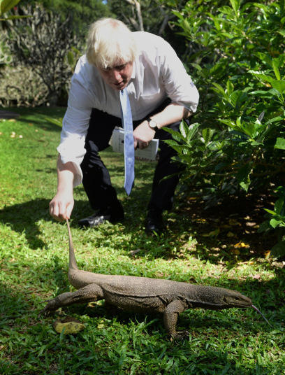 考察新加坡期间,鲍里斯特意参观了新加坡植物园,其中种有英国皇家植物园捐赠的兰花和橡皮树,而面对一只未成年巨蜥,市长先生竟然挑衅地拽住了它的尾巴,真可谓艺高人胆大。