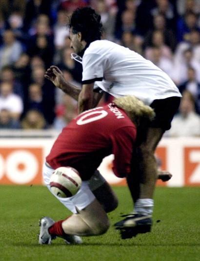 不要以为这位大腹便便的市长只会坐在办公室里指挥天下,在足球场上,鲍里斯也是相当的拼命,在一场和德国队的友谊赛里他替补出场,在与对方球员拼抢时硬是刹车不及撞向了对方后卫。