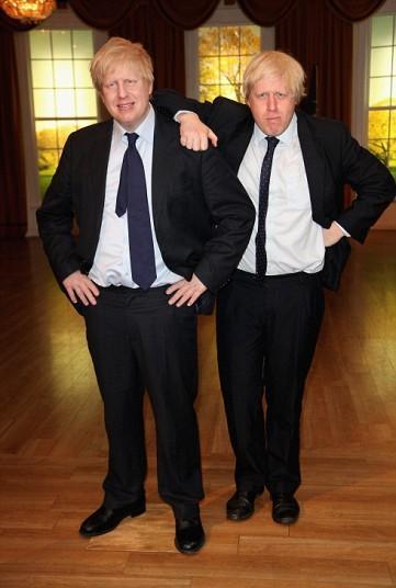 杜莎夫人蜡像馆内,鲍里斯为自己的蜡像揭幕,喜欢搞怪的他将右手搭在“自己”的肩膀上,与之合影。