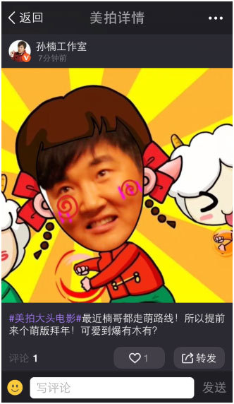 【延伸阅读】明星拜年方式各不同 孙楠美拍“大头电影”创意