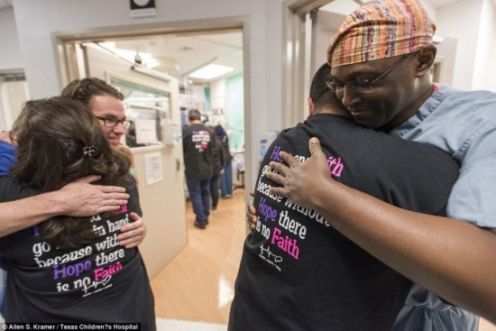 大家庆祝这对连体婴儿分体成功。