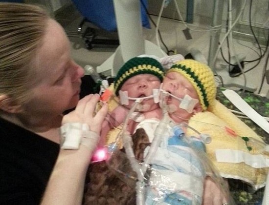 台湾东森新闻网12月7日援引英国《每日邮报》的报道称,34岁的Robin与丈夫Hamby12月4日剖腹产下双头连体男婴,分别命名为Asa和Eli,刚出生数小时内健康状况本来很好,但是隔天突然出现心律不整问题,心脏每分钟跳动300下,比起正常人每分钟60-100下快了三倍,医生曾试图以药物控制,但终究宣告无效,男婴撒手归天。