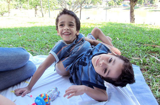 国际在线专稿:据英国《每日邮报》9月2日报道,来自巴西巴伊亚(Bahia)的5岁连体双胞胎阿图尔(Artur)与赫托尔·罗查(Heitor Rocha),共用3条腿、肠道、膀胱以及生殖器。他们将接受分离手术,或许从此生活将被彻底改变。
