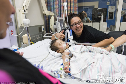 天生共享肺、肝脏、横隔膜、盆骨、肠道及心血管,亦因此一直留在德州儿童医院深切治疗部。