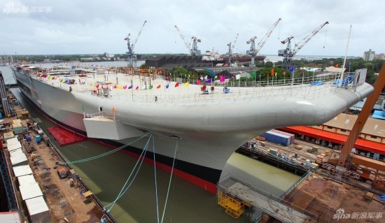 【延伸阅读】印度国产航母下水1年终于开始造舰岛